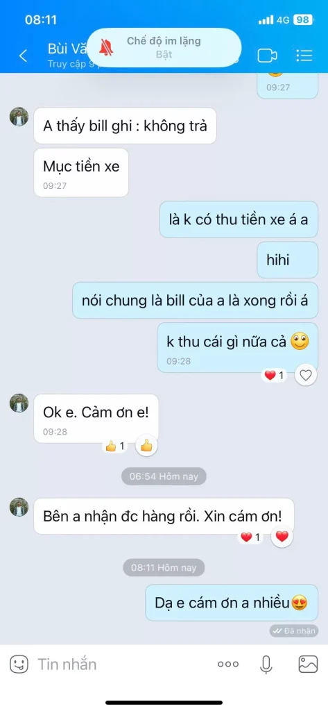 TIN NHẮN PHẢN HỒI CỦA KHÁCH HÀNG